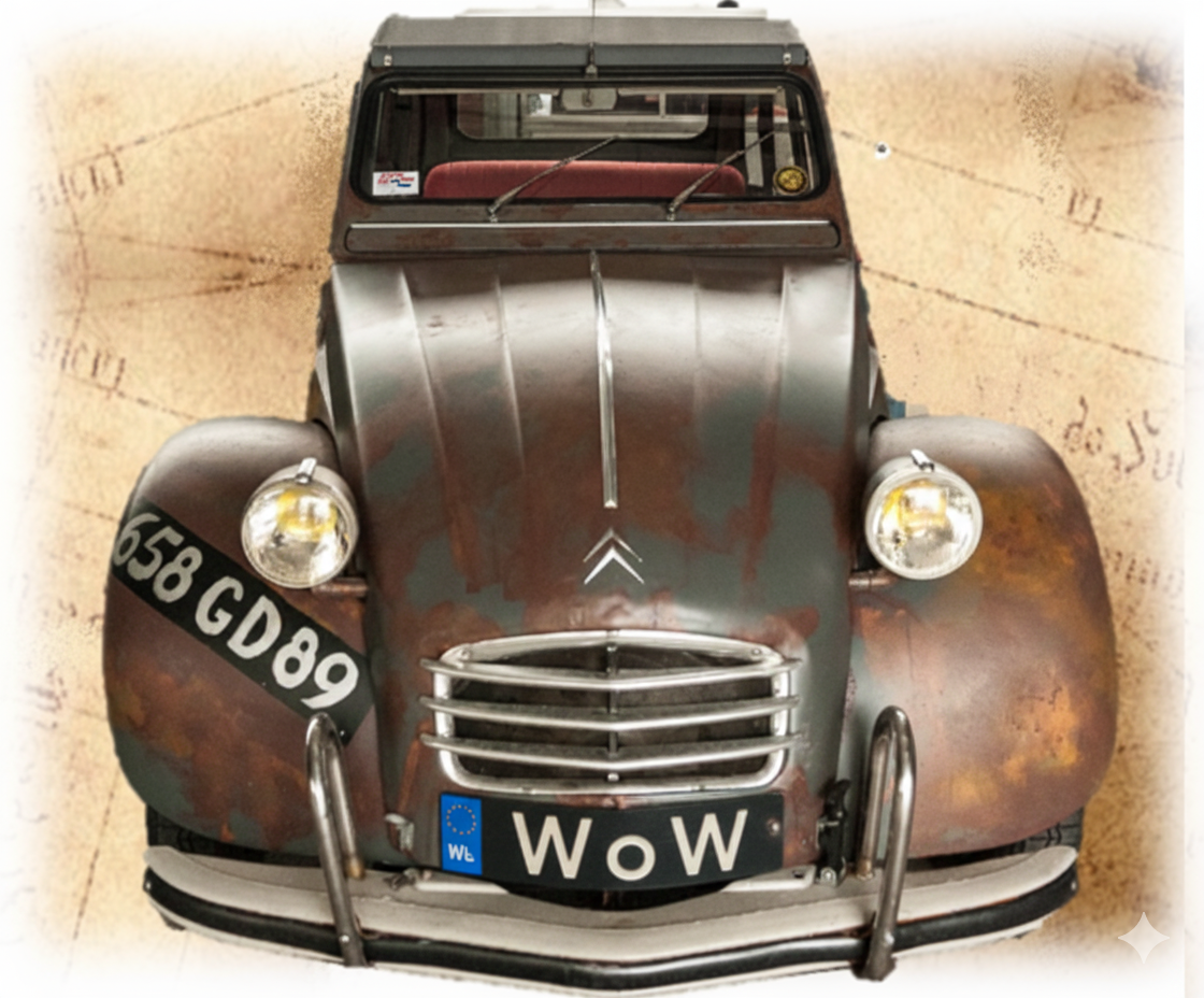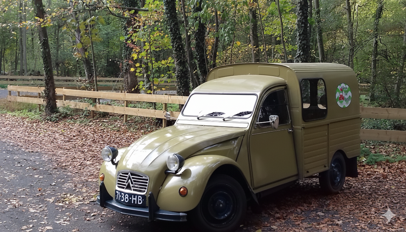 Dit is all-in: BTW, brandstof, gebruik van de 2CV, ontvangst met koffie/thee en appeltaart, routebeschrijving, drankje of ijsje onderweg én een drankje bij de afsluiting.