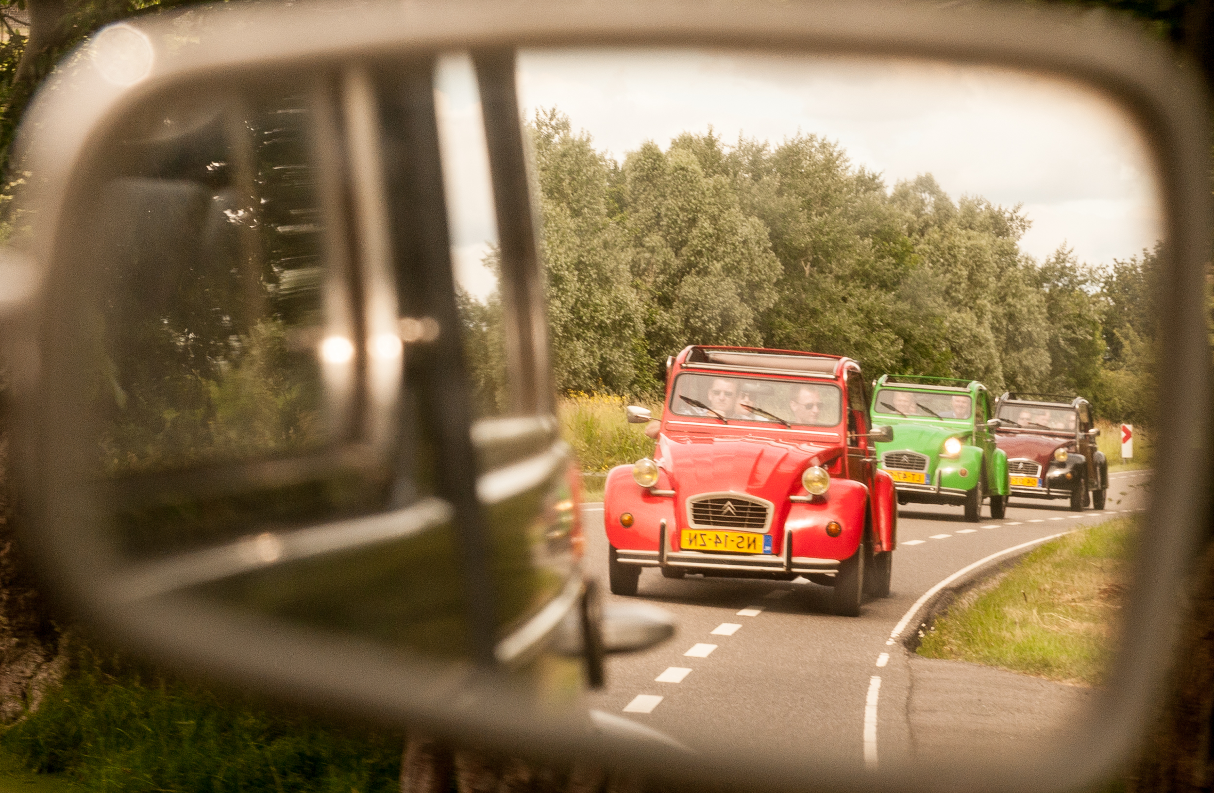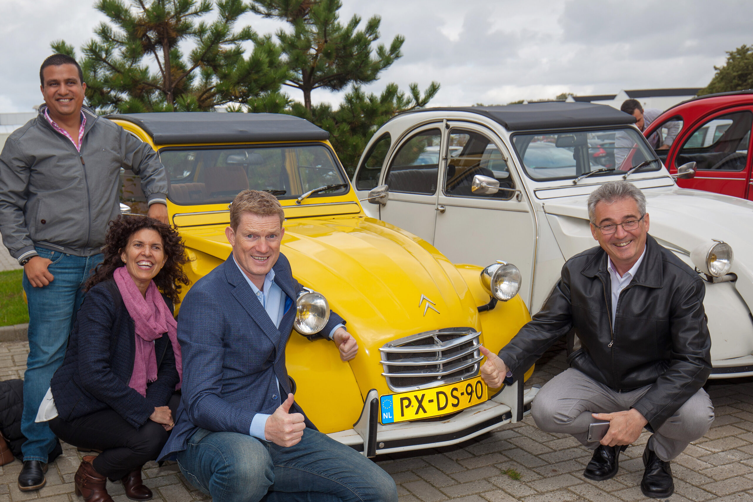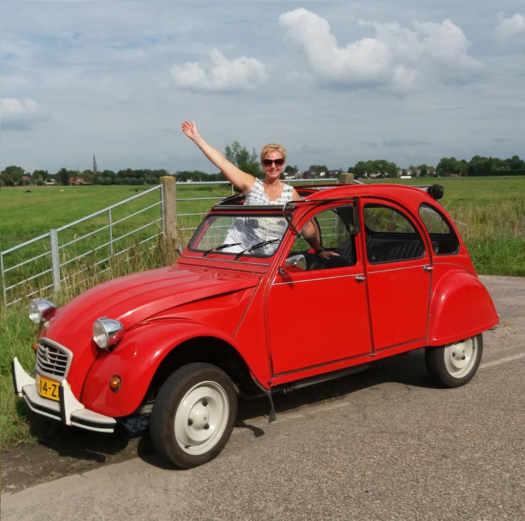 We starten met een korte video en persoonlijke uitleg over het rijden met de 2CV. Nog even een vrolijke groepsfoto met de eend… en dan begint het avontuur!